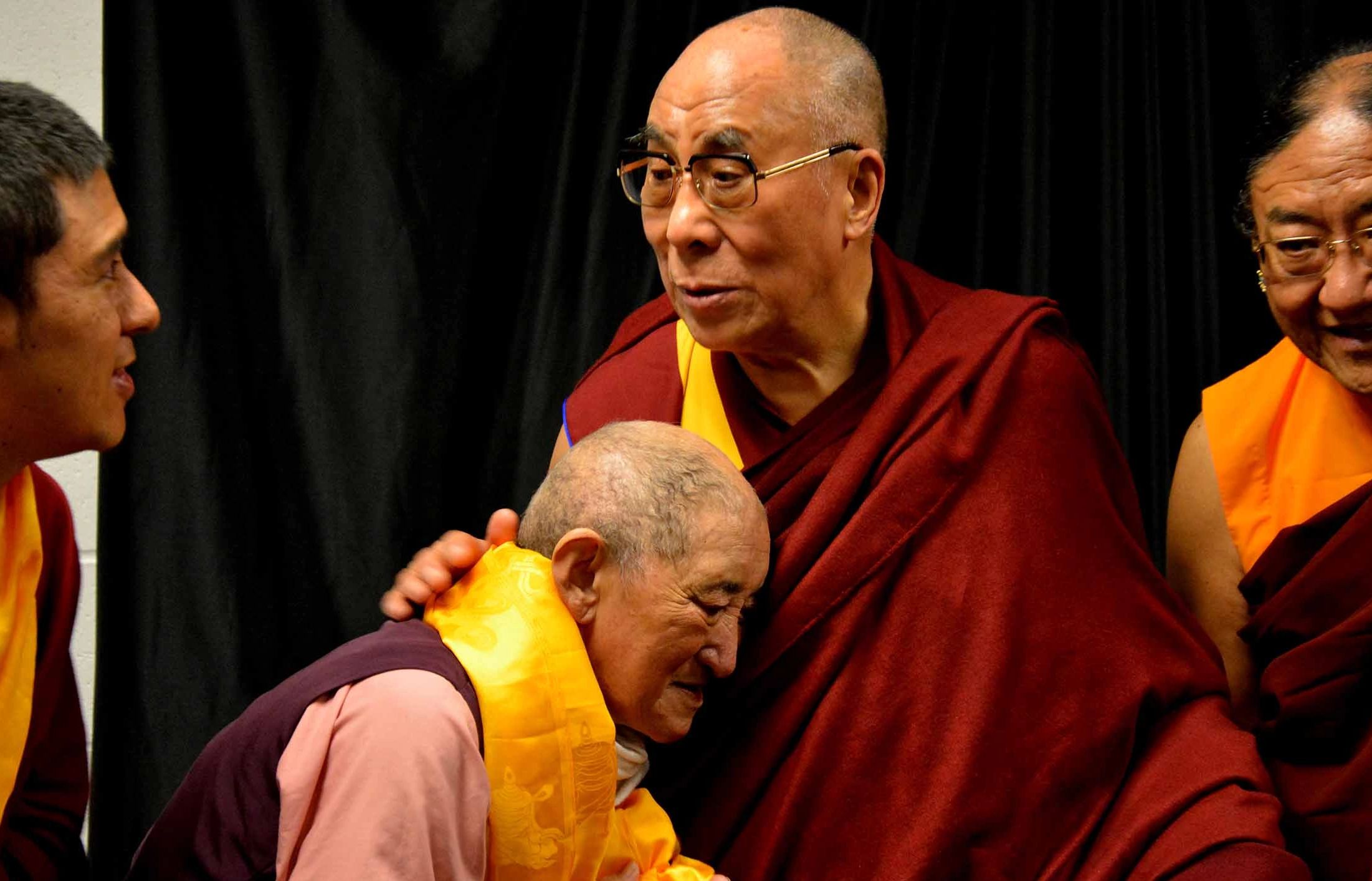HH Dalai Lama with HH Sakya Trichin and Dr Thupten Jinpa in Eugene, OR USA
